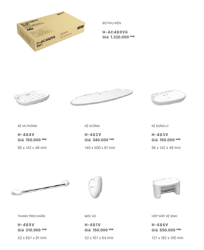 Bộ phụ kiện nhà tắm đầy đủ các sản phẩm thiết yếu bằng sứ, phù hợp với phong cách thiết kế giản dị