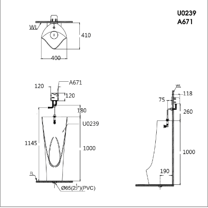 | Loại sản phẩm | Bệ tiểu treo tường |