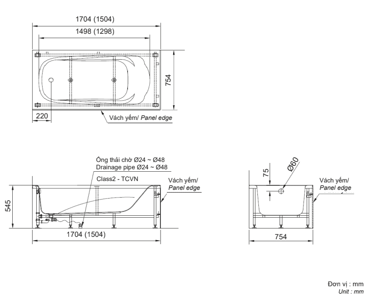 Bồn tắm yếm phải