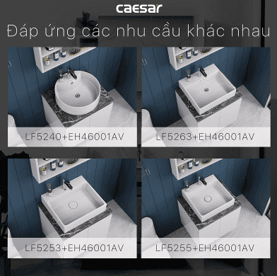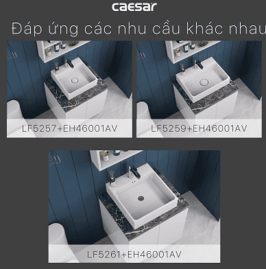 Vòi lavabo Caesar: Nên dùng các mẫu như B260CU, B390CBU để đồng bộ thẩm mỹ.