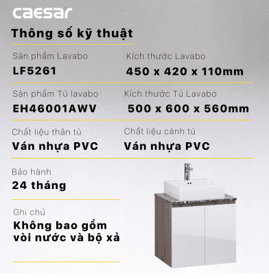 Kích thước lavabo: Theo tiêu chuẩn LF5261